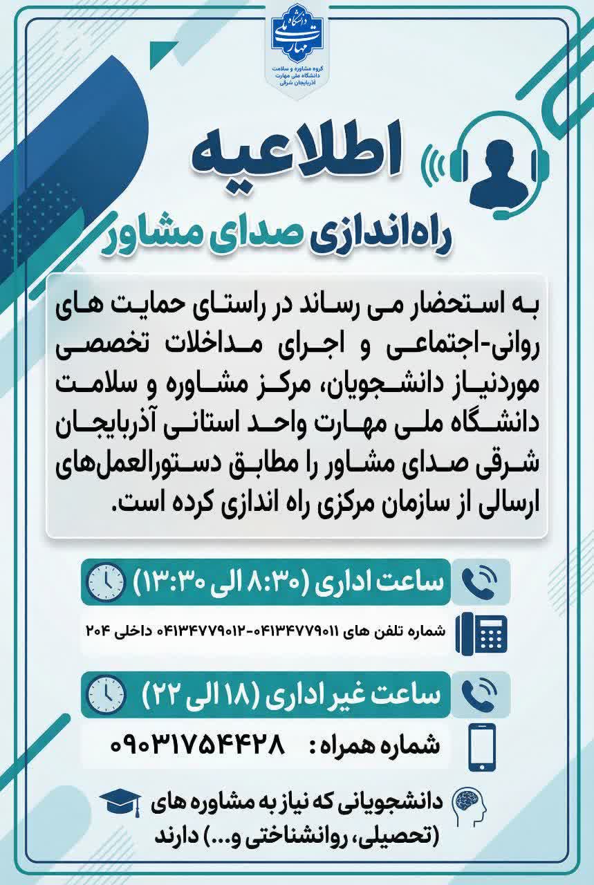 راه اندازی صدای مشاور دانشگاه ملی مهارت واحد استانی آذربایجان شرقی